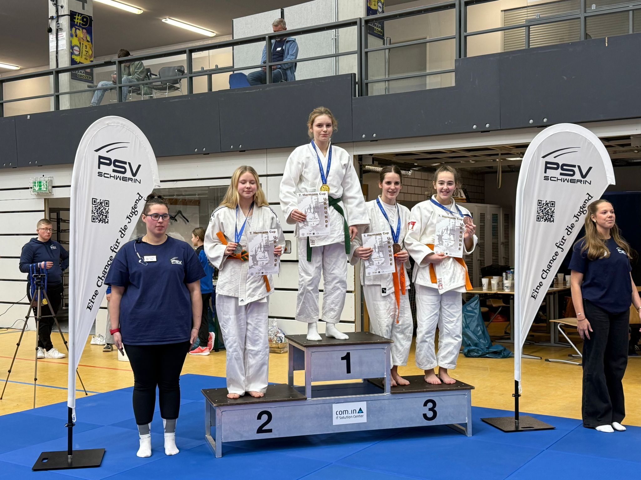 An diesem Samstag machten sich unsere beiden Sportschülerinnen auf den Weg nach Schwerin zum Wettkampf. Dies ist als Kaderturnier ausgeschrieben und daher wurden sie von den Trainern aus Frankfurt/Oder begleitet. Leider hatte der Bus, in welchem Hannah saß, eine Panne und erreichte den Wettkampfort nicht. Ciara zeigte jedoch eindrucksvoll ihren derzeitigen Leistungsstand und gewann die Goldmedaille. Herzlichen Glückwunsch!